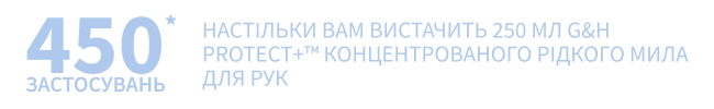 Рідке мило G&H PROTECT+™ – концентрований засіб, який не просто очищує шкіру, а й делікатно дбає про її стан. Після використання мила не залишається відчуття сухості і стягнутості, шкіра гладенька і м’яка, як після крему. Завдяки милу G&H PROTECT+™ усуваються неприємні запахи, а шкіра набуває легкого свіжого аромату.